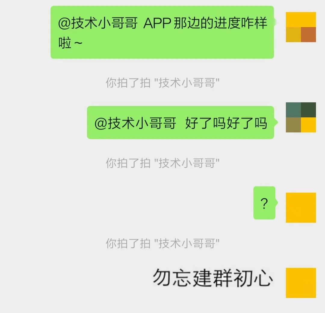 比如,当产品经理想要找找开发小哥哥的时候,可以打开微信,简单地拍一拍他。也许,开发小哥哥会没那么暴躁…