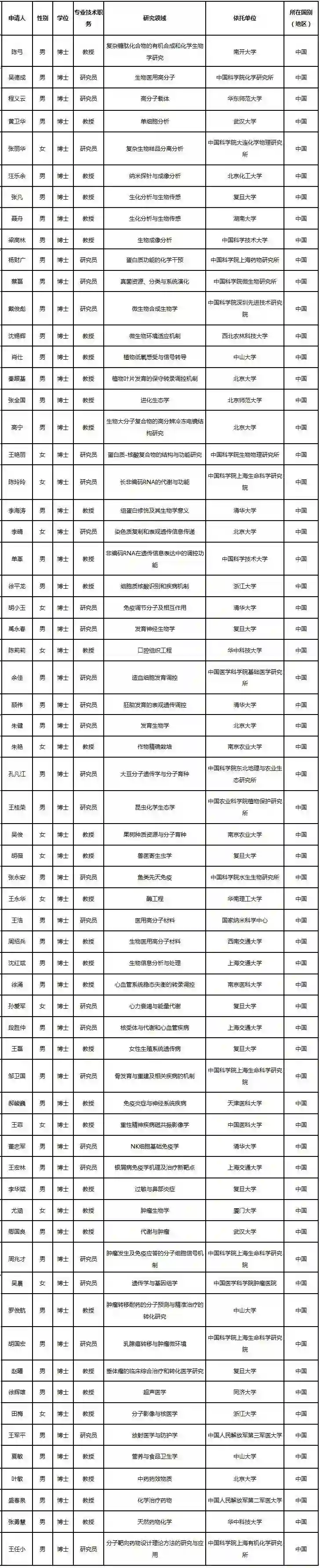 以下为医谷小编整理的2017年度国家杰出青年科学基金建议资助项目申请人之生物医学领域名单: