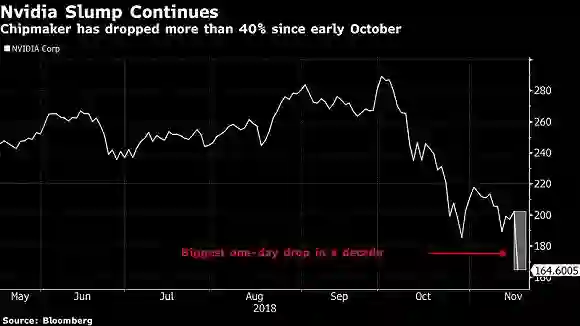 就在昨天,英伟达再度重挫,收跌 12%,两日暴跌超 28%,市值已不足 900 亿美元,自 10 月的高位已经腰斩。
