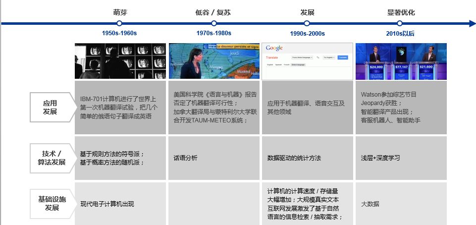 进入2010年以后,基于大数据和浅层、深层学习技术,自然语言处理的效果得到了进一步优化。机器翻译的效果进一步提升,出现了专门的智能翻译产品。对话交互能力被应用在客服机器人、智能助手等产品中。