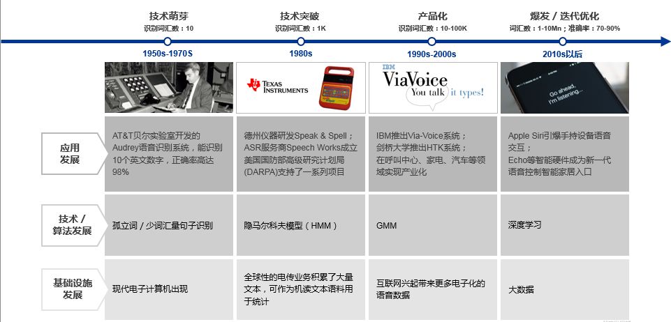 突破的产生始于深度学习的出现。随着深度神经网络(DNN)被应用到语音的声学建模中,人们陆续在音素识别任务和大词汇量连续语音识别任务上取得突破。