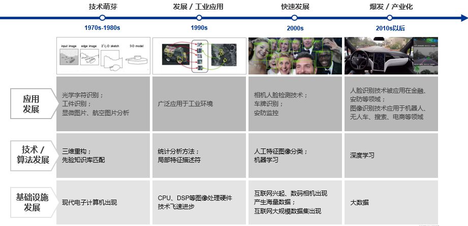 进入21世纪,得益于互联网兴起和数码相机出现带来的海量数据,加之机器学习方法的广泛应用,计算机视觉发展迅速。以往许多基于规则的处理方式,都被机器学习所替代,自动从海量数据中总结归纳物体的特征,然后进行识别和判断。