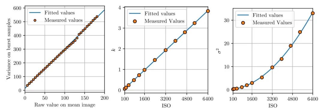 因此只需要测出x的均值其方差的线性关系图,即可依据其斜率k和截距sigma。实际上这里的k是一个关于g的常量,g乘以100即为ISO,也可以直接算出k。
