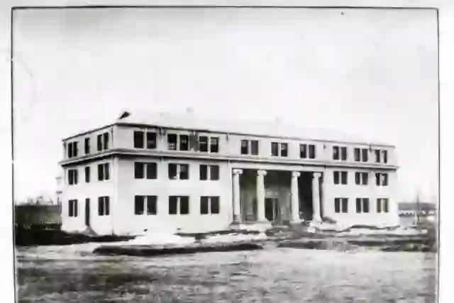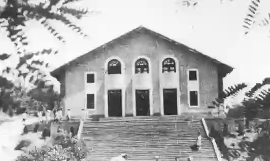 这是一张拍摄于抗战时期的照片,画面中的“七七抗战”礼堂巍然矗立在山城的土地上。在抗战期间,这座礼堂是国立中央大学开展集会、演讲之地,也是自由精神与民族精神碰撞之地。