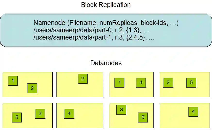 HDFS被设计成能够在一个大集群中跨机器可靠地存储超大文件。它将每个文件存储成一系列的数据块,除了最后一个,所有的数据块都是同样大小的。为了容错,文件的所有数据块都会有副本。每个文件的数据块大小和副本系数都是可配置的。应用程序可以指定某个文件的副本数目。副本系数可以在文件创建的时候指定,也可以在之后改变。HDFS中的文件都是一次性写入的,并且严格要求在任何时候只能有一个写入者。