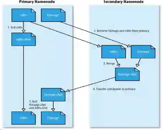由于NameNode仅在启动期间合并fsimage和edits文件,因此在繁忙的群集上,edits日志文件可能会随时间变得非常大。较大编辑文件的另一个副作用是下一次重新启动NameNode需要更长时间。SecondNameNode的主要功能是帮助NameNode合并edits和fsimage文件,从而减少NameNode启动时间。