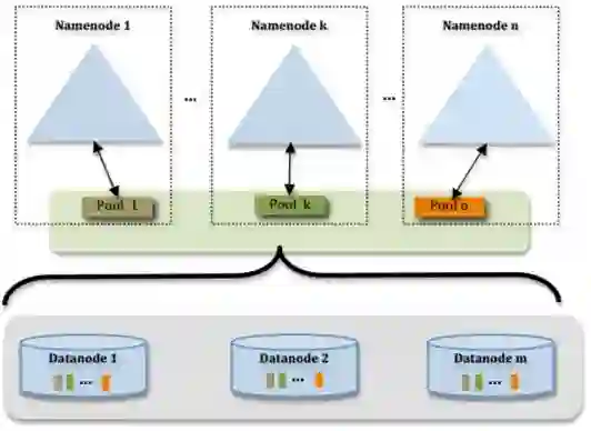 每个NN都会定义一个存储池,有单独的id,每个DN都为所有存储池提供存储。