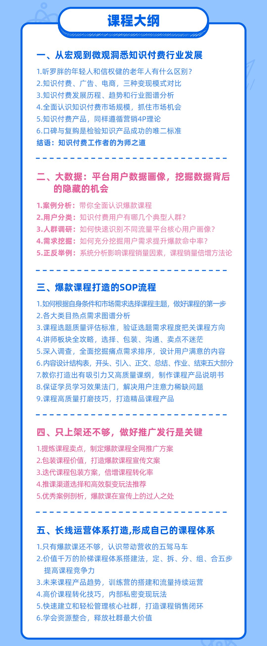 我们将从行业宏观、课程制作、市场分析、营销策划、长线运营五个维度,给你带来专业的分享。