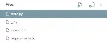 此外,还需要添加两个文件:一个是项目的空白 Python 文件,这是 repl.it 用于检测 repl 是处于评估模式还是项目模式的关键。这里只需使用新文件按钮添加空白的 Python 脚本即可。随后,还需要创建一个将承载渲染 UI 的 index.html 文件。在此不需要深入了解这部分的内容,只需将此 index.html 上传到 repl.it 项目即可。