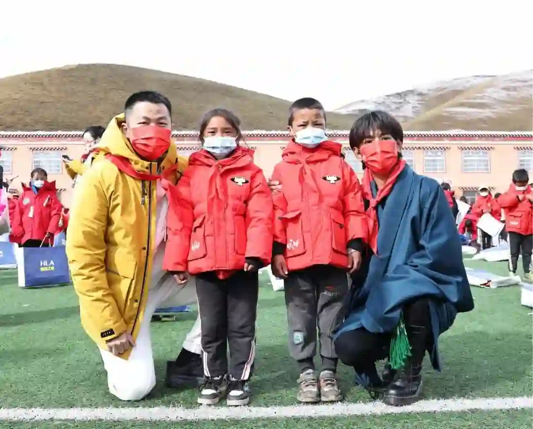 “多一克温暖”第9年,海澜集团董事长周立宸和『道法自然 山水人间』系列体验官丁真珍珠给理塘县曲登乡小学全校师生送去御寒冬衣
