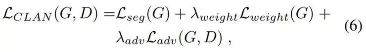 目标域流中,集成预测同样进入判别器D。不同的是,我们维持两个分类器预测的差值,作为局部对齐程度的依据 (local alignment score map)。该差值与D所反馈的损失相乘,生成语义级别的对抗损失: