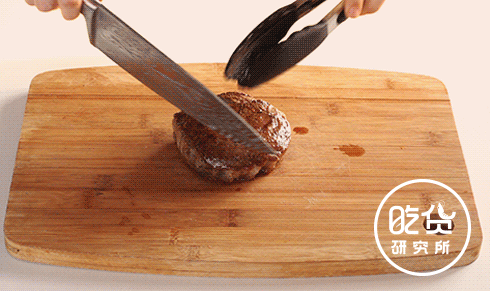 坦率地说,如果牛排厚度小于1.5cm,想要到得到“肉汁”和“焦香”并存的牛排其实难度比较大,而厚切牛排煎起来才有足够的(容错)时间,能让表面彻底焦化的同时,内部也不至于因为升温过快而过度流失汁水。我们经过不断的尝试和调整,最终把菲力的牛排的厚度调整为3cm。这样只要每面各煎几分钟,然后从锅里取出静置5分钟,撒点盐就可以吃了!方便又美味!