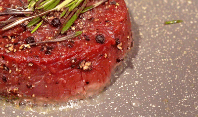 完美的牛排通常需要具备“柔嫩多汁”和“焦香四溢”两大要素。牛排加热至三分熟后,肉汁溢出达到高峰,随后牛排表面开始脱水,温度升高到足以引发“美拉德反应”,给牛排表面裹上了一层鲜亮油润的“焦糖色外壳”,同时散发出令人着迷的肉香。因此,让牛排表面剧烈焦化,同时内部保留足够汁水,就是煎牛排的终极目标!
