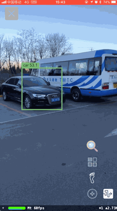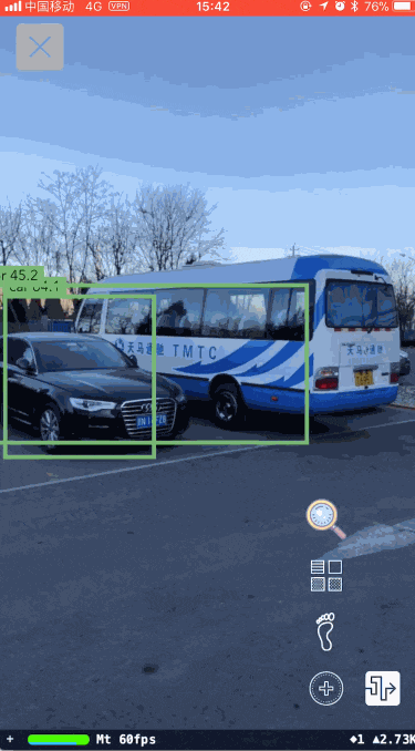 在确定WhereAreYou需要添加的功能后,我们立足于打车找车这个问题进行调研开发,最后终于实现了一个稳定、高效、实时的基于多种CNN模型混合的车辆发现跟踪算法,下面GIF可以看到效果。