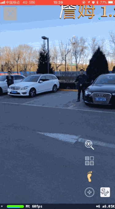 }写了一个周末差不多把上面功能完成,这个时候对于参赛获奖是没有任何底气的。因为其实这个点子并不十分新颖,技术难点也不够。最主要的痛点是,我们真机联调测试的时候发现,在10m范围内GPS定位的精度完全不可靠,屏幕中渲染的点位置经常错乱。我们之前知道近距离GPS定位会不准,却没想到3D模型在屏幕上对误差的反应这么敏感,这样的话比赛时现场演示是绝对不行的。