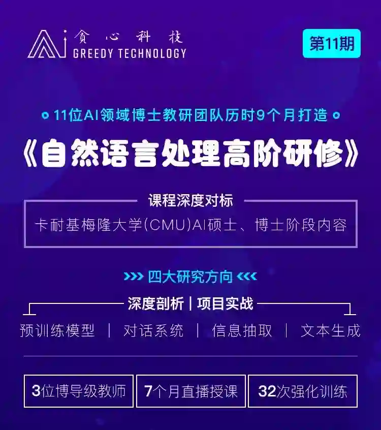 我们正处在信息爆炸的时代、面对每天铺天盖地的网络资源和论文、很多时候我们面临的问题并不是缺资源,而是找准资源并高效学习。其次,即便网络上的资源非常多,学习是需要成本的,而且越有深度的内容越难找到好的学习资源。如果一门课程帮助你清晰地梳理知识体系,而且把有深度的知识点脉络讲清楚,这就是节省最大的成本。为了迎合大家学习的需求,我们这次重磅推出了《自然语言处理高阶研修》。