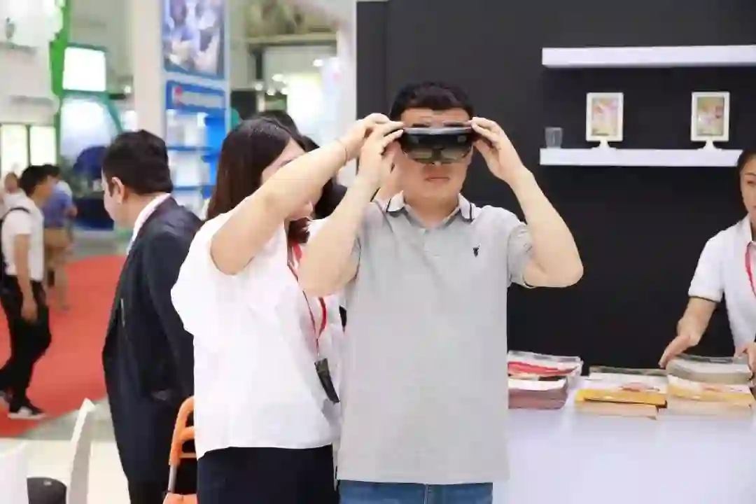 武汉畜牧博览会上,参观者在体验挺好农牧混合现实产品概念模型