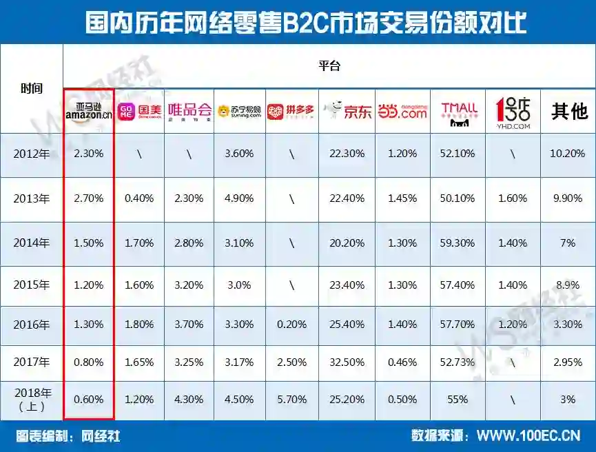 当前,无论是市场认知度还是占有率,亚马逊在华都已不复当年的辉煌。