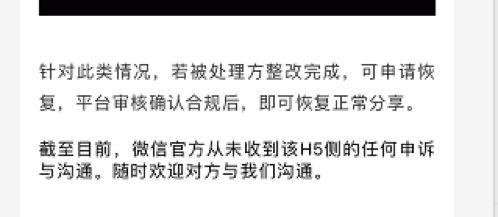 随后微信官方人工对H5进行检测定性,发现这个H5确实存在诱导分享,根据平台对诱导分享违规链接的处罚机制,就对这个H5进行了屏蔽朋友圈分享的操作。这个操作意味着——该H5分享到朋友圈时候仅自己可见。