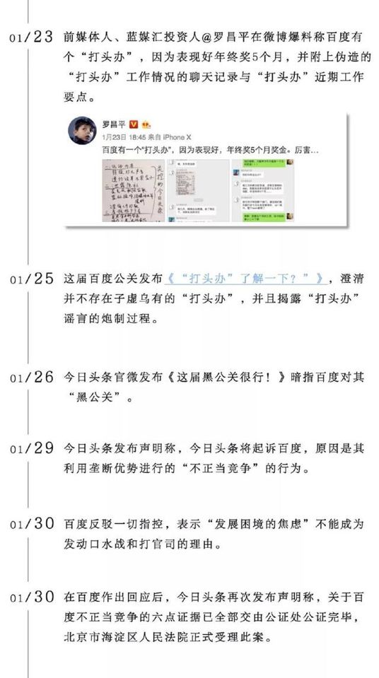 一切的起源是,突然有个叫“罗昌平”的媒体人发了个微博,说百度有一个归内容生态市场部管的“打头办”,因为表现好,年终奖5个月。然后拿出了微信对话截图和手写白板——可能是这个世界上最容易伪造的证据之二……
