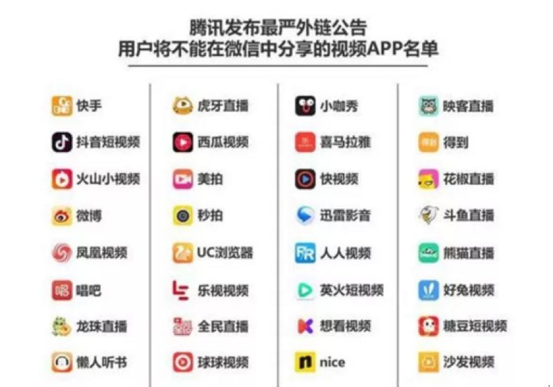 就在5月18日当天,微信还发布了一条重要声明《关于进一步升级外链管理规则的公告》,里面有一条很重要的规则,再次戳痛了抖音的心——“外部链接不得在未取得信息网络传播视听节目许可等法定证照的情况下,以任何形式传播含有视听节目的内容。”
