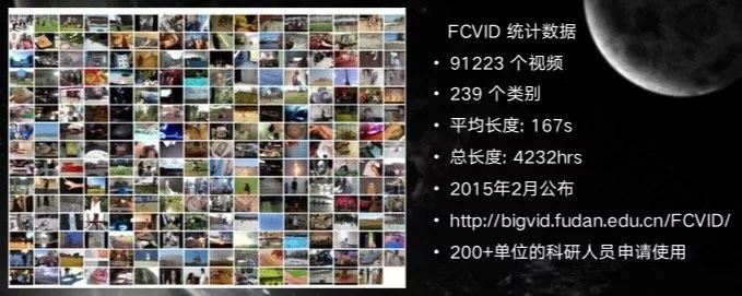 Fudan-Columbia Video Dataset (FCVID) 是我们复旦大学 2015 年公布的一个数据集,只有九万多个视频,也是 YouTube 上的一个数据。