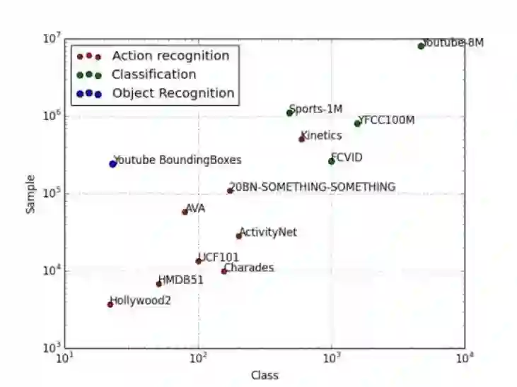 YouTube-8M,有 4000 多个标签/类别。典型的分类和打标签的任务,就是每个视频只有一两个标签。受限于版权问题,谷歌不能提供原始视频,只提供了 YouTube 上的 ID。几年以后,拿着 ID 找视频,找不全,因为有些视频已经被原始用户删掉了。