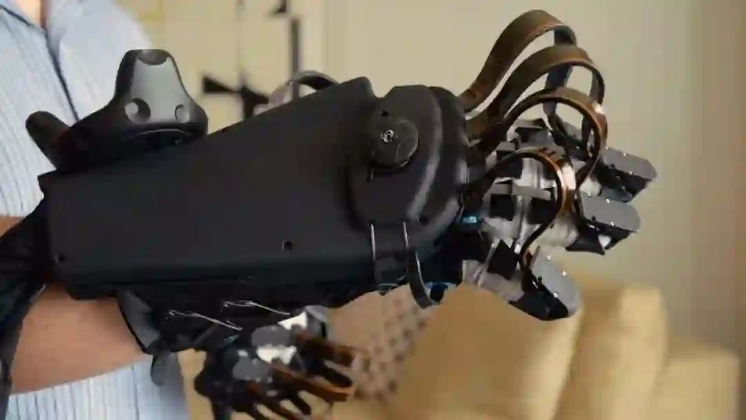 虽然触觉手套可以提供有价值的反馈,但它们不能完美地阻止你的手指在试图抓住一个虚拟物体时闭合,也不能阻止你的手在虚拟桌子上停留时穿过桌子。