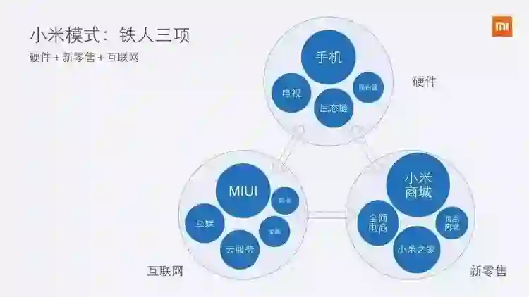 不过,在小米的招股书中,小米的另一项差异化被以“铁人三项”的形式提出,小米的铁人三项指的是硬件、互联网服务和新零售。除了与亚马逊相似度很高的新零售,硬件业务层面,小米的小米生态链也是一种独创的商业模式。