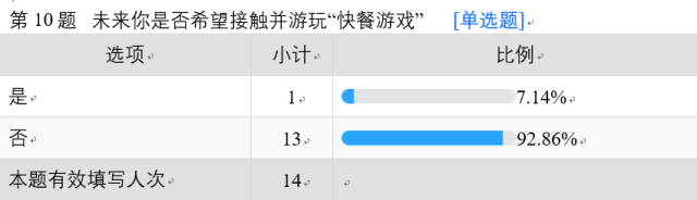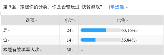我们可以发现,尽管多数人都玩过快餐游戏,但是表明态度时,几乎都是持否定倾向。