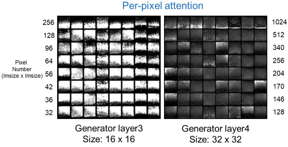 在这个实现中,自注意机制会应用到生成器和鉴别器的两个网络层。像素级的自注意力会增加 GPU 资源的调度成本,且每个像素有不同的注意力掩码。Titan X GPU 大概可选择的批量大小为 8,你可能需要减少自注意力模块的数量来减少内存消耗。