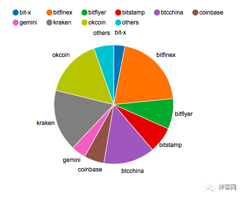 各大交易所 BTC/USD 的交易情况