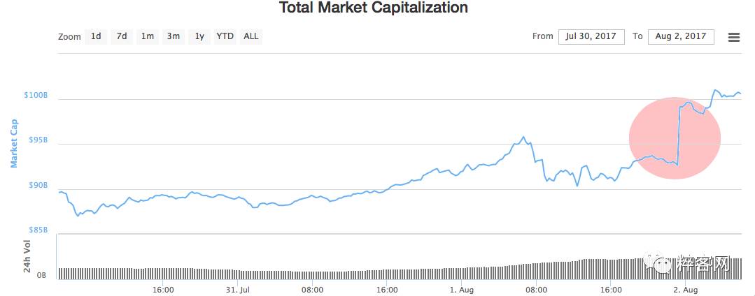 据统计,BCC 开采不到 15 分钟,加密数字货币的市场总额就从 900 亿增长至 1000 亿美元。而其中 75%的增长量归功于竞争币市场。