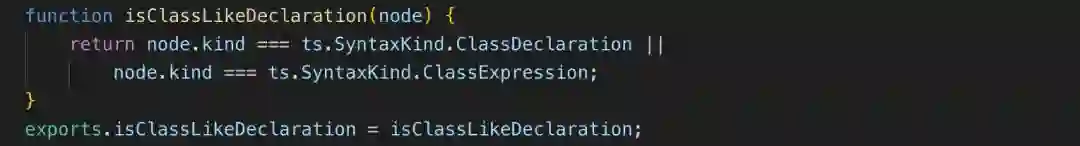 其中isClassLikeDeclaration、isInterfaceDeclaration对应的方法我们可以在node.js文件中找到: