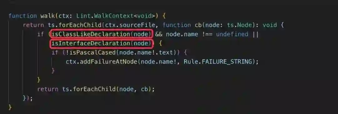 在规则代码中主要通过isClassLikeDeclaration、isInterfaceDeclaration这两个方法进行判断的。