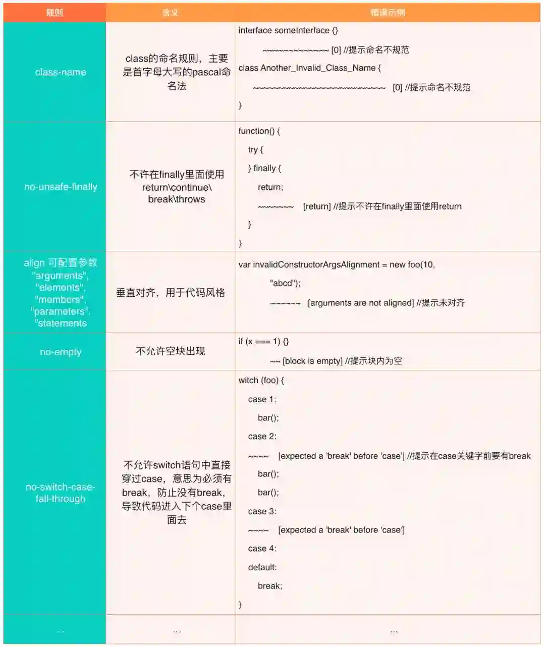 以下规则主要来源于TSLint规则,是某些规则的简单介绍。
