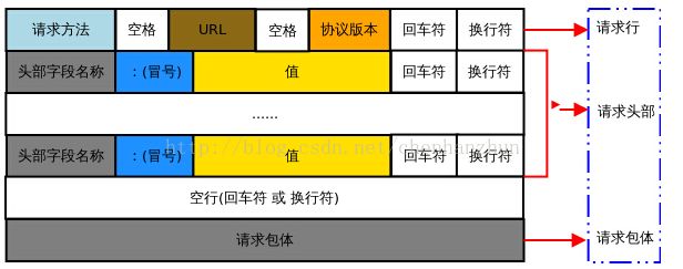 请求报文由请求行(request line)、请求头(header)、请求体四个部分组成,如下图所示:
