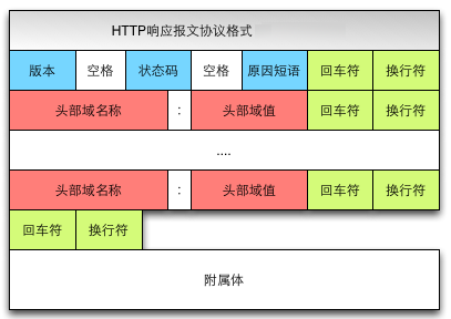 响应报文由响应行(request line)、响应头部(header)、响应主体三个部分组成。如下图所示: