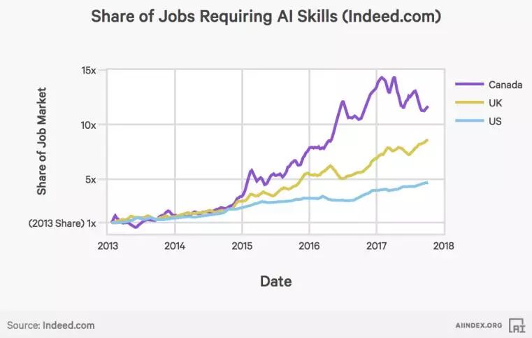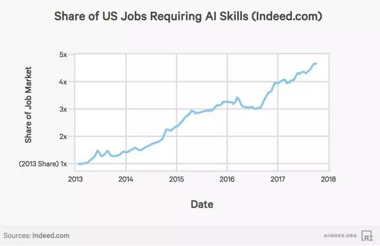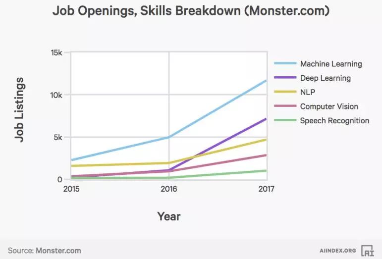 在美国职位信息网站Monster.com上,涉及人工智能的岗位去年是11100条,今年已经大幅增加到了31000条。
