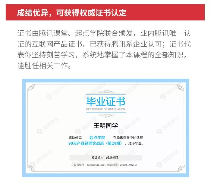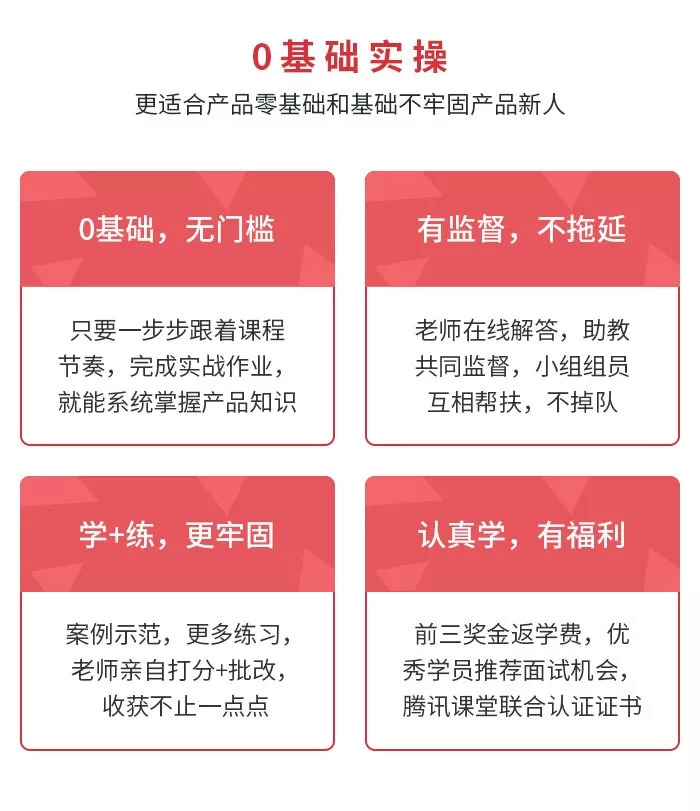 由腾讯课堂和起点学院联合打造的“90天产品经理实战班”,是适合产品零基础及产品基础不牢固同学的系统化产品经理课程。