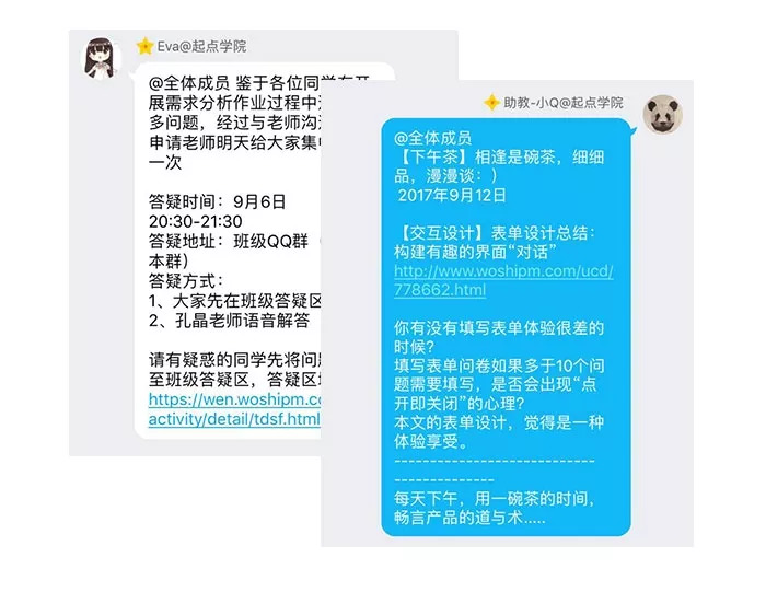 除了课程知识的学习,每天班主任也会根据课程内容给大家发相关的精品文章,以及结合目前的一些产品的信息,给同学们提出一些问题,供大家发散思考。