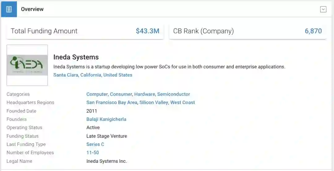 据了解,Ineda Systems 是由海德拉巴市连续创业家 Gude Dasaradha 于 2011 年创立,进行人工智能、自动驾驶和物联网技术开发,2013 年至 2014 年间,该公司因设计和开发用于可穿戴设别的低功耗 SoC 芯片而闻名。(来源:品玩)