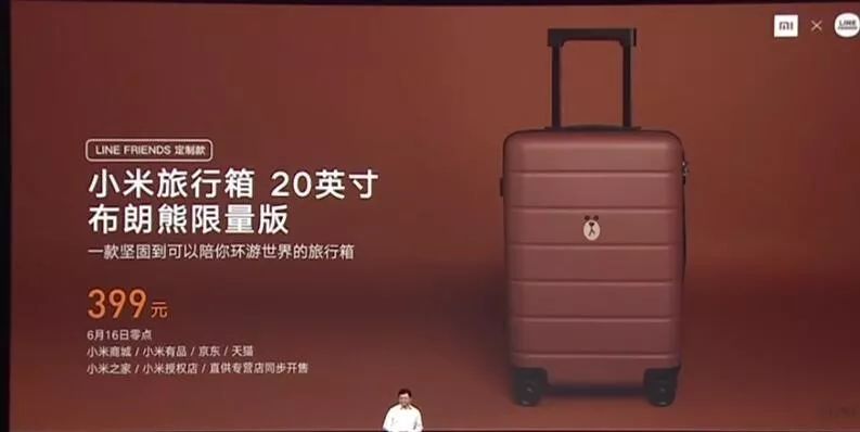 随后小米也推出了和 Line Friends 合作定制款的米家 20 寸布朗熊行李箱以及米家九号平衡轮(设计灵感来自哪吒风火轮)。