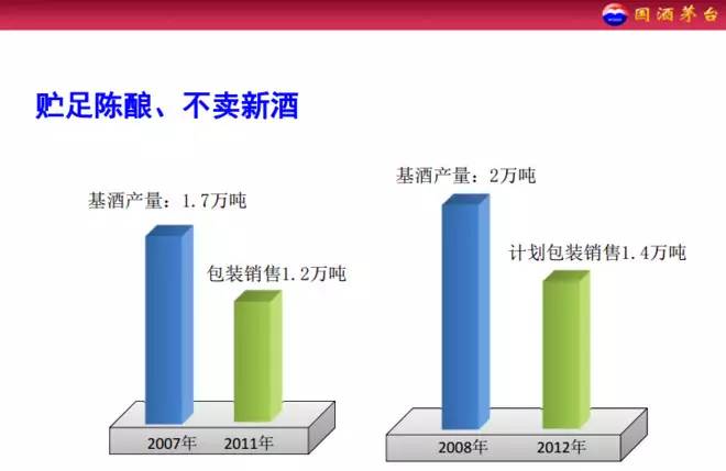 资料六:季克良2012年在中欧一次论坛上《茅台酒品质保障体系研究》中显示的则是,(计划)包装销售量大致占到四年前基酒产量的70%左右。