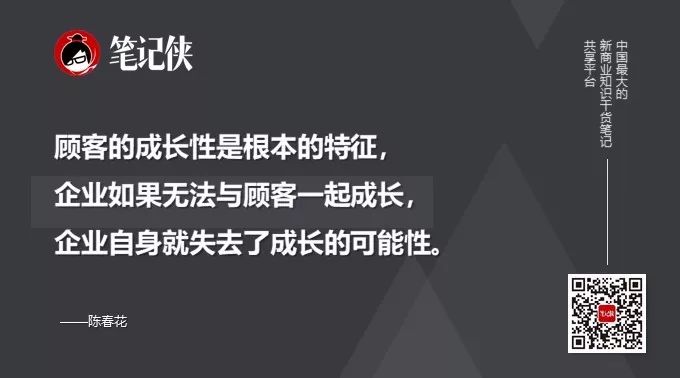 顾客的成长性是根本的特征,企业如果无法与顾客一起成长,企业自身就失去了成长的可能性。