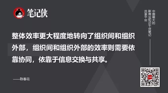 所以,整体效率也更大程度地转向了组织间和组织外部,组织间和组织外部的效率则需要依靠协同,依靠于信息交换与共享。