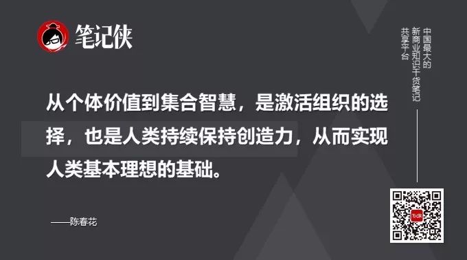 从个体价值到集合智慧,是激活组织的选择,也是人类持续保持创造力,从而实现人类基本理想的基础。