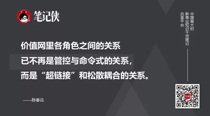 价值网里各角色之间的关系是“超链接”和松散耦合的关系,已经不再是管控与命令式的关系。