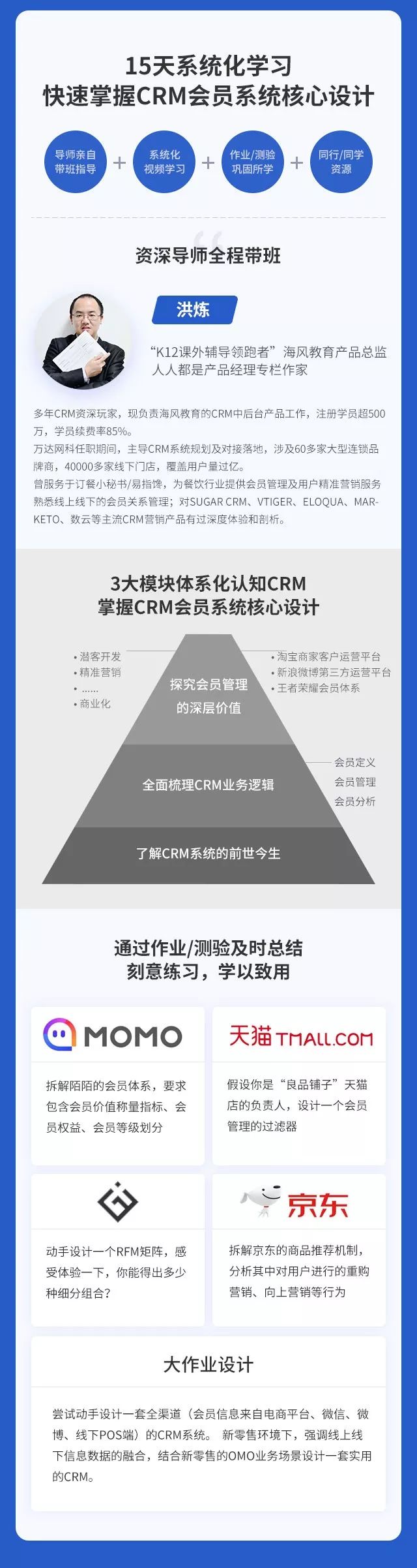 起点学院特邀拥有7年CRM相关经验,参与打造过多款新零售、餐饮O2O等平台CRM系统,“K12课外辅导领跑者”海风教育产品总监@洪炼,发起15日学习计划,带你了解CRM的前世今生,全面梳理CRM会员系统的业务逻辑,深度探究会员管理体系的应用价值与方法。