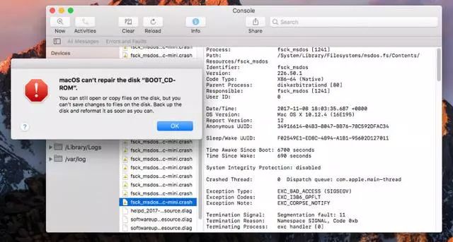 这个漏洞存在于 fsck_msods 工具之中。fsck_msods是一个系统工具,它可以用来检测并修复 FAT 文件系统设备中存在的错误异常。该漏洞允许以系统级权限执行任意代码,当恶意 USB 设备插入易受攻击的系统时,可能会接管整个系统,趋势科技移动威胁分析团队的安全研究人员 Veo Zhang 率先发现了这一漏洞。